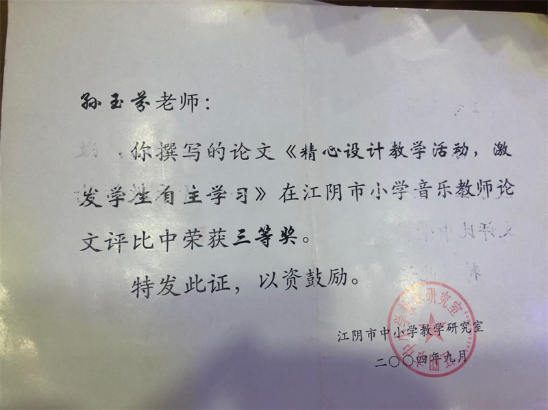 以上为孙文老师作为记者和公办教师时所获荣誉(部分)